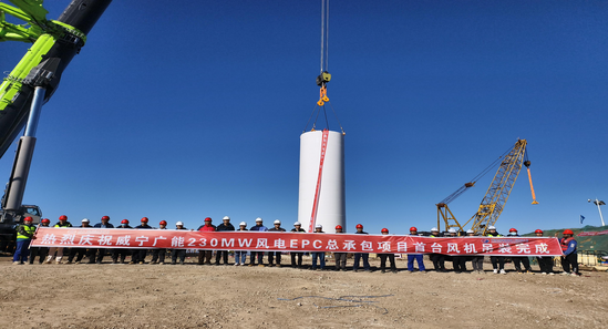 貴州威寧廣能230兆瓦風電群風機首吊圓滿成功